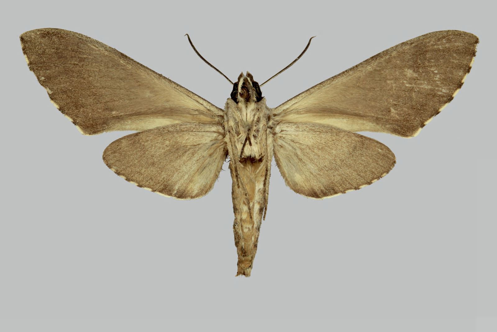 Psilogramma sundana, female, underside. Timor-Leste, Portuguese Timor, Suai